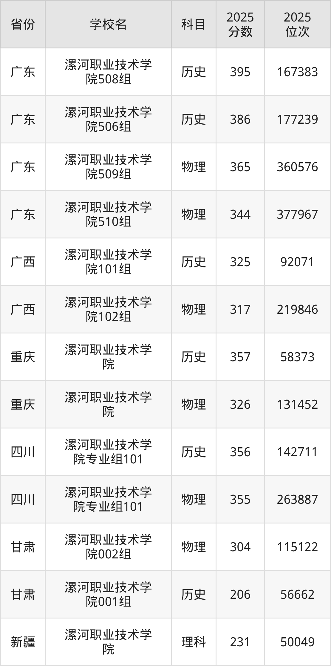 2025年漯河職業(yè)技術學院歷史類最低分306分(42937名)、物理類最低分294分(104934名)。