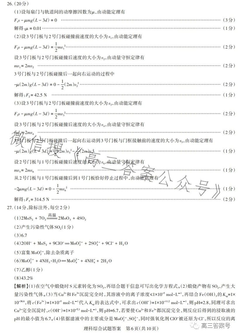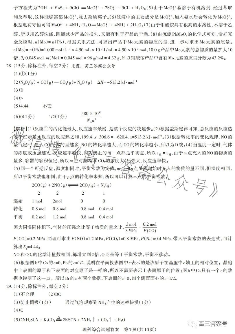 二、2023山西一模理綜參考答案