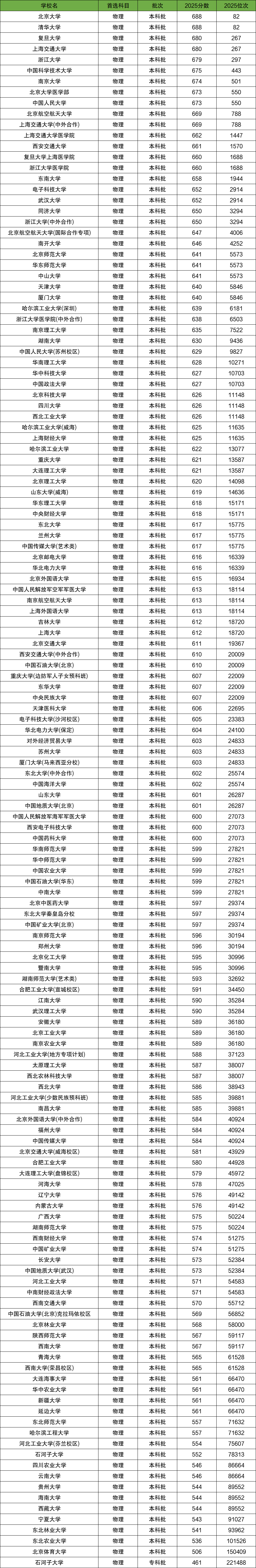 鑒于本文篇幅有限,僅以河北為例,呈現(xiàn)2025年全部985和211院校在河北的最低錄取分?jǐn)?shù)線。