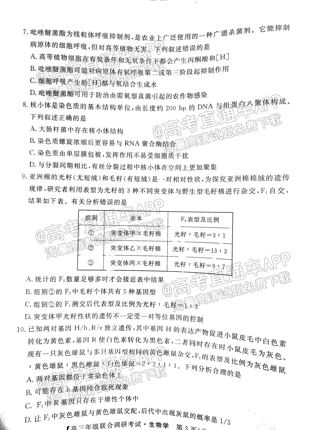 1、2023湖北元月高三調(diào)研考試生物試卷