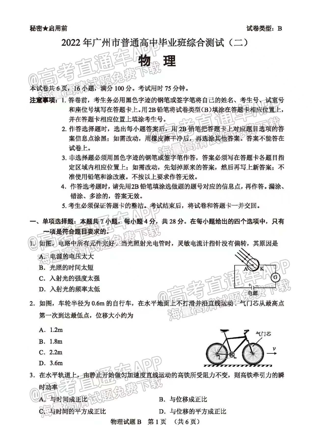 ①廣州二模物理試卷信息