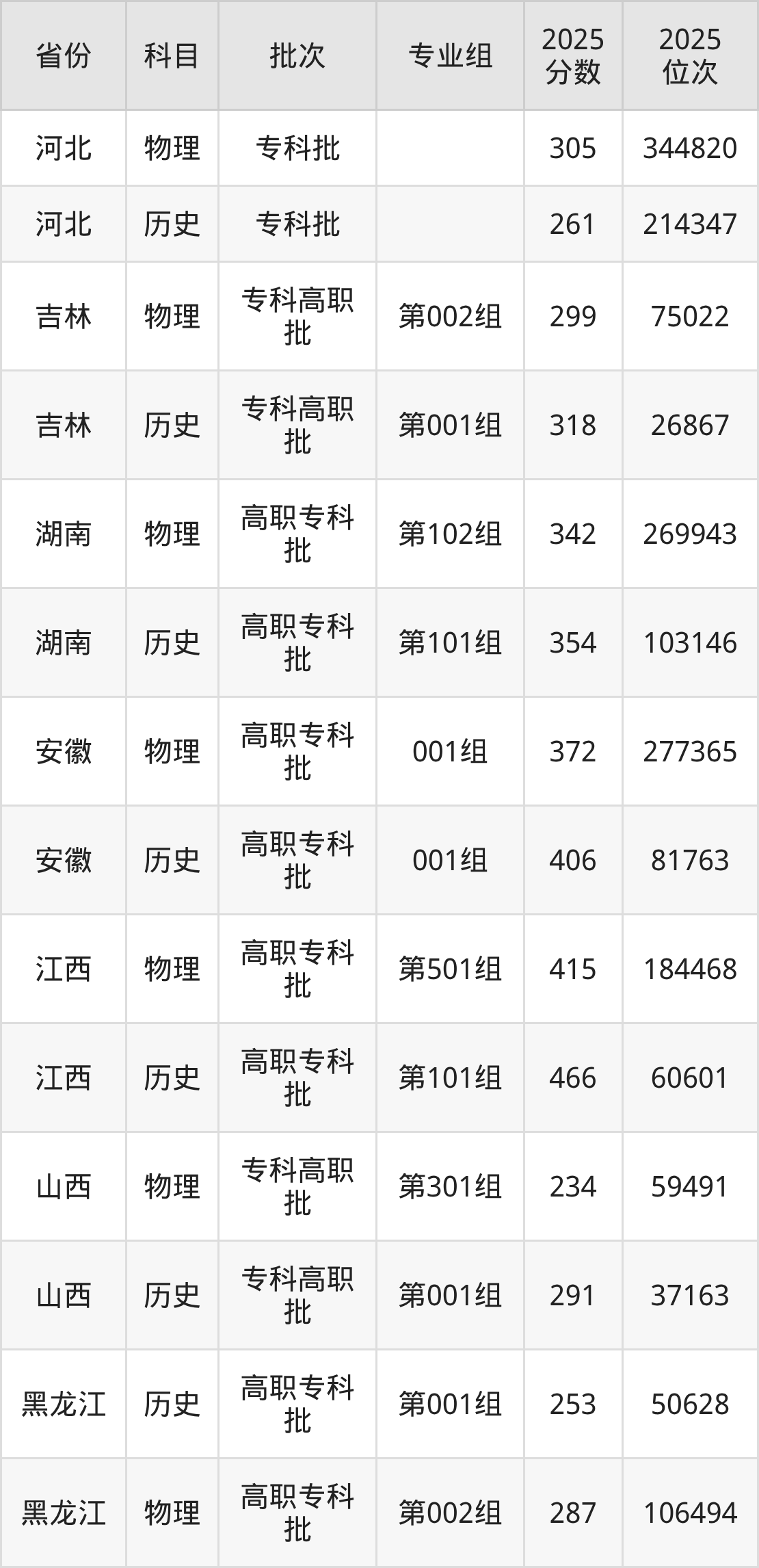 普通類(lèi)專(zhuān)科歷史類(lèi)最低253分,專(zhuān)科物理類(lèi)最低287分