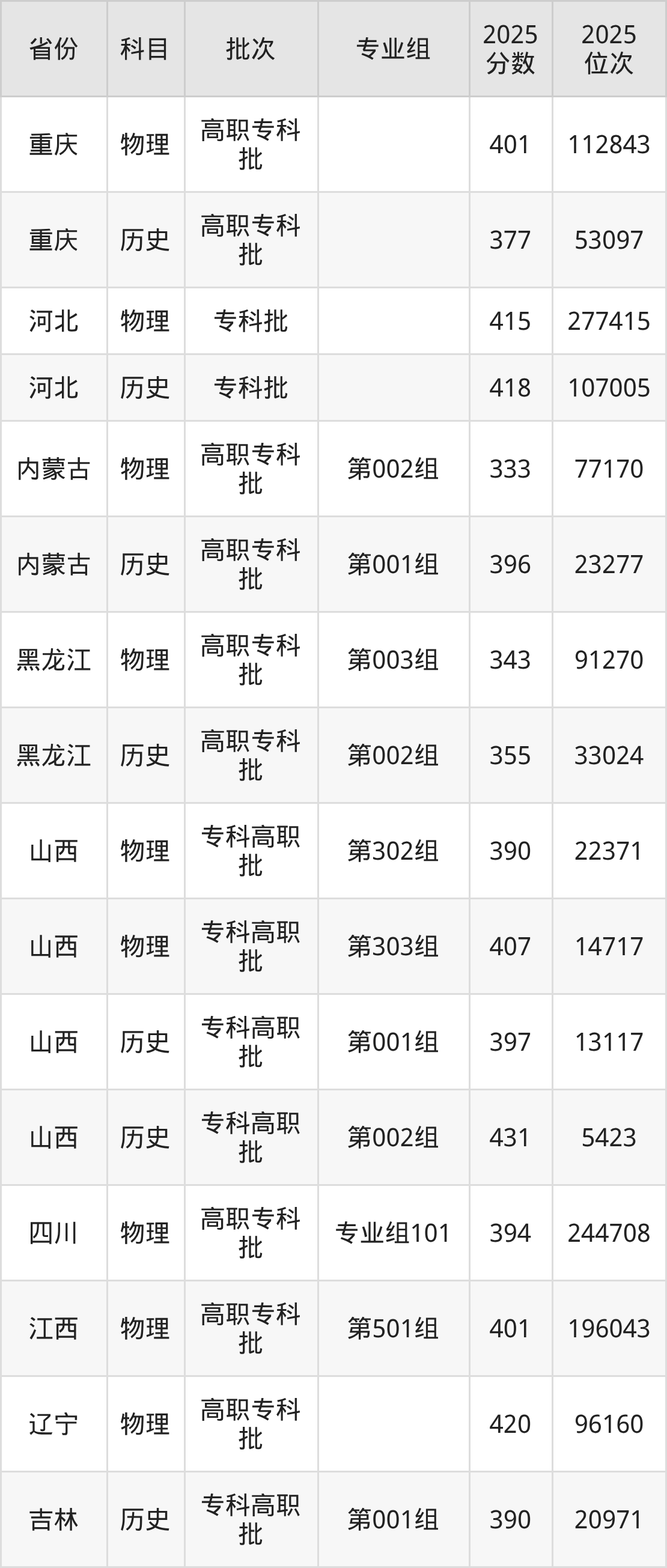 2025年投檔錄取最低分為401分,錄取最低位次為112843名。