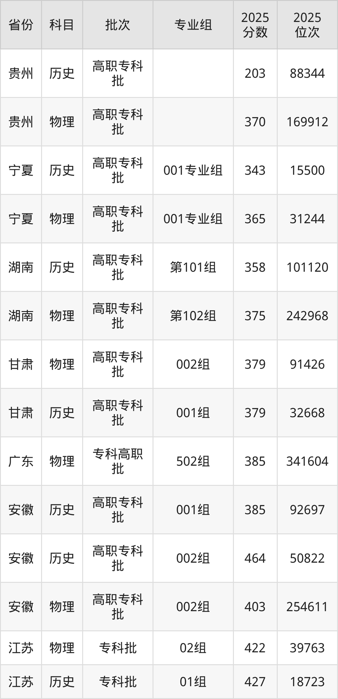2025年在??莆锢眍愡M行招生,各專業(yè)組分?jǐn)?shù)線詳情如下: