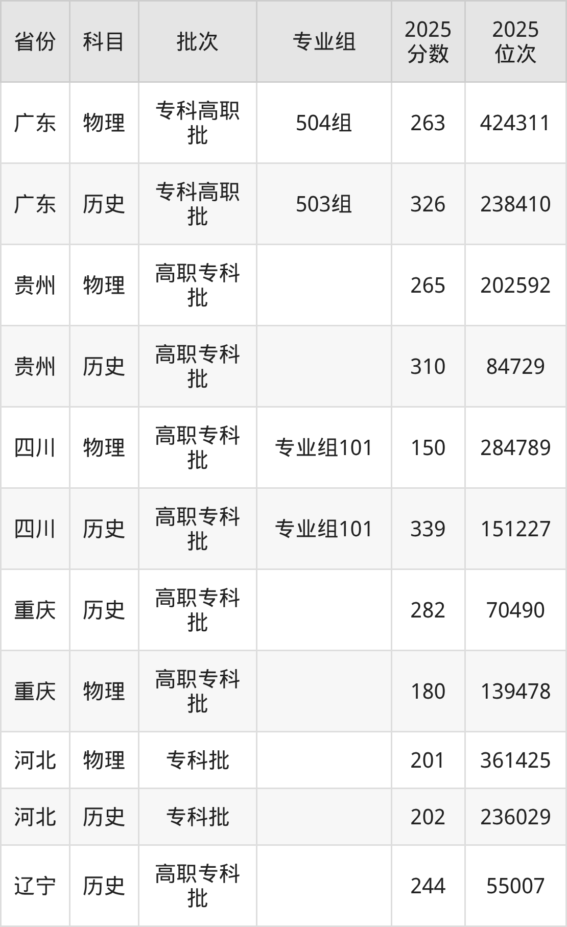2025年在專科歷史類進行招生,各專業(yè)組分數(shù)線詳情如下: