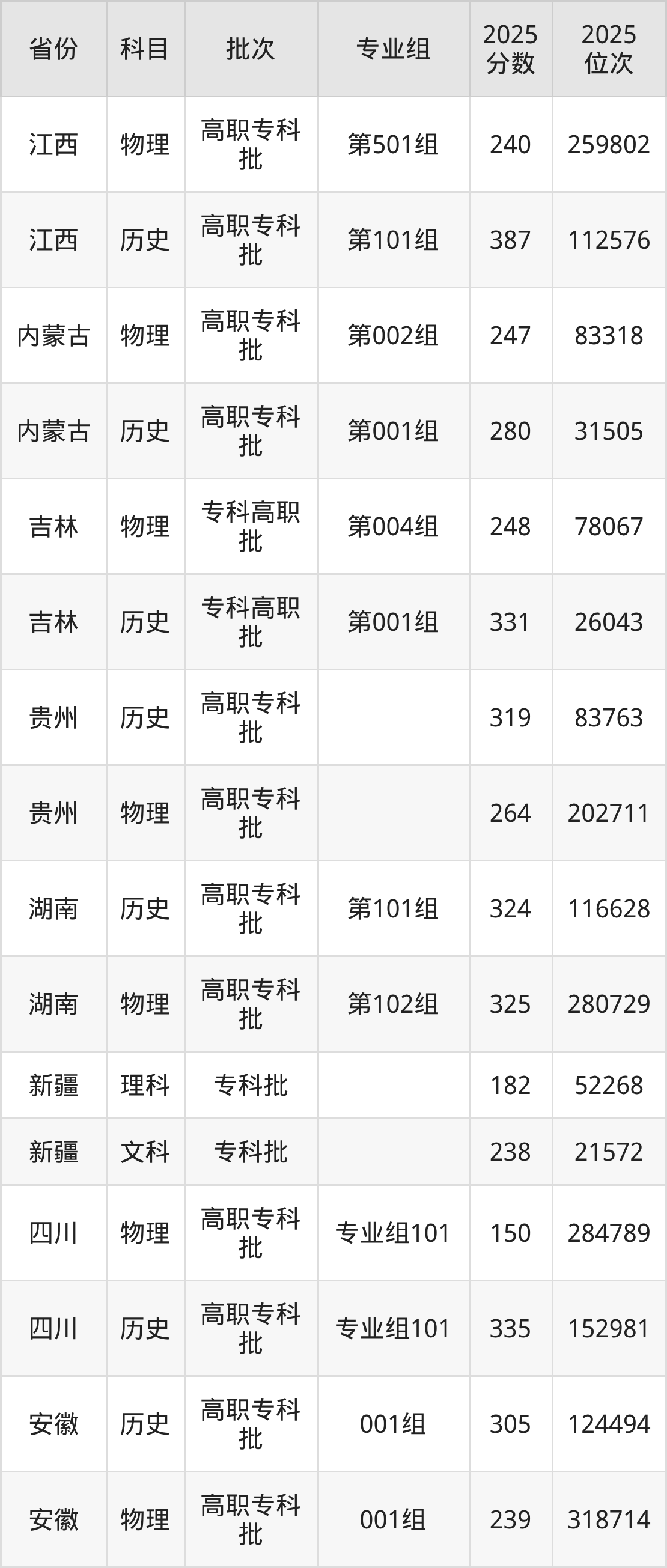 2025年投檔錄取最低分為335分,錄取最低位次為63242名。